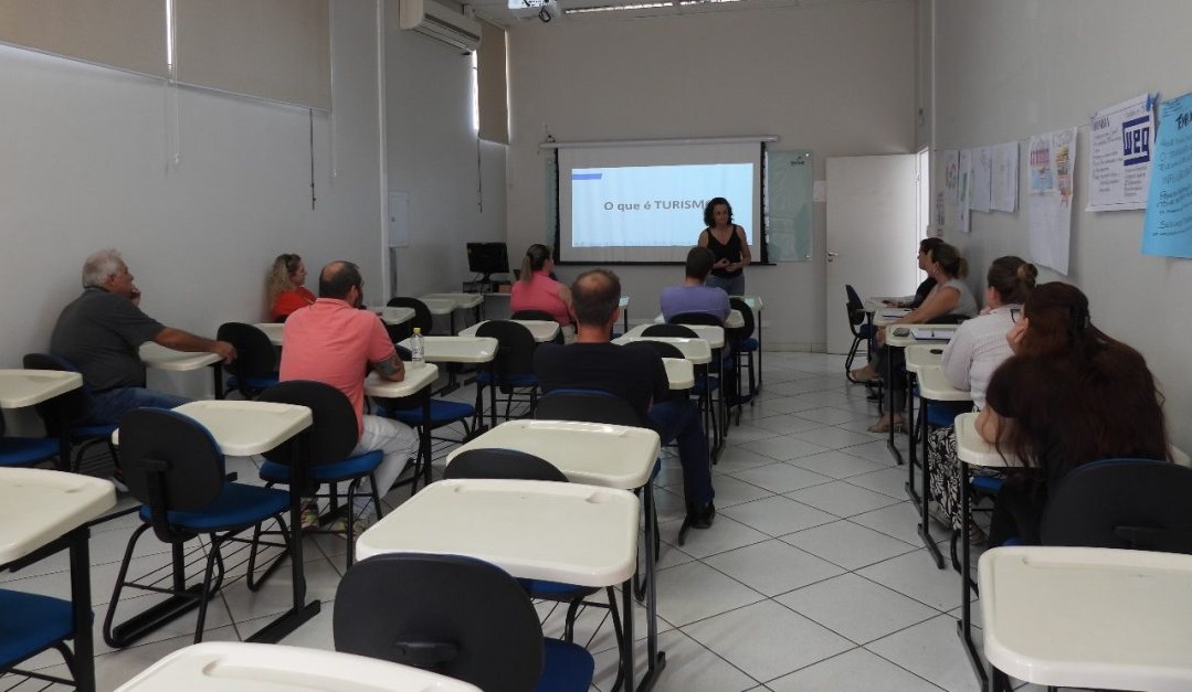 A turismóloga e consultora do Sebrae, Luiza da Silva, começou a palestra com o tema “A importância estratégica do turismo gastronômico”. Já no início, perguntou “o que é turismo”, fazendo os cerca de 16 participantes (entre novos e antigos) a refletirem. Ela introduziu os verbos do turismo: Dormir (oferta hoteleira); Comer (oferta gastronômica); Comprar (oferta comercial) e Visitar (oferta cultural/natural). “Turismo é empreender e gera dinheiro. O turismo só funciona em rede (hotelaria, gastronomia, comércio e cultura) trabalhando juntas”, explicou.