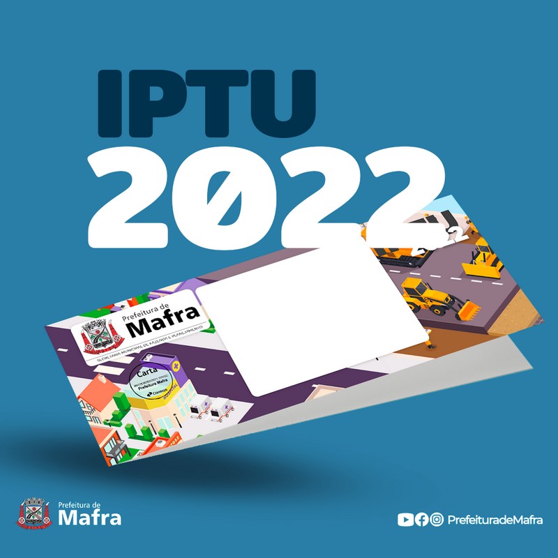 Os contribuintes que ainda não receberam os carnês do IPTU 2022 pelos Correios, podem emitir as guias no site oficial do municÃpio www.mafra.sc.gov.br  Mais informações no setor de Controle Tributário da Prefeitura de Mafra, ou pelo telefone (47) 3641-4028.