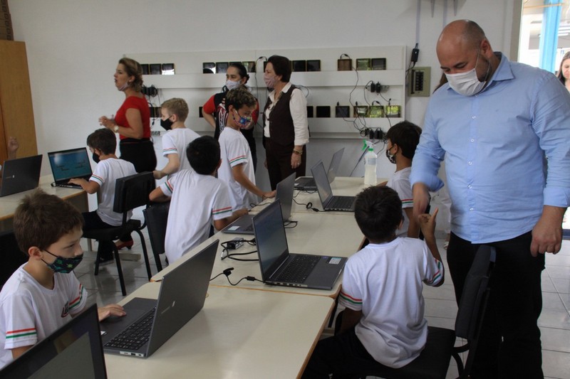 A Secretária de Educação, Esporte e Cultura, Jamine Emmanuelle Henning destacou que já estão sendo instalados os notebooks, telões e projetores em todas as escolas municipais de Mafra, atendendo a cerca de 6 mil alunos, para que as aprendizagens sejam cada vez mais significativas. “É a geração da tecnológica e por isso temos que investir para que a nossa educação seja uma educação conectada”.