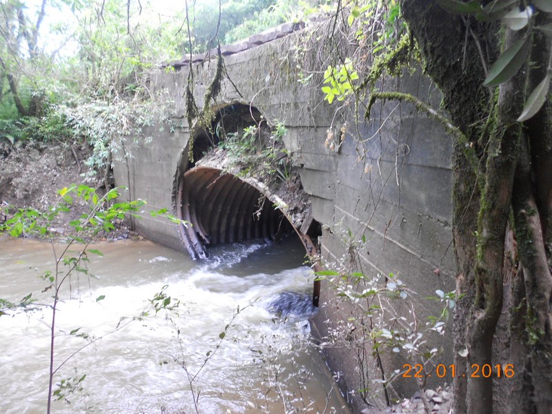 – Bueiro no Rio do Cedro sobre o rio Saltinho: bueiro armico descolado.