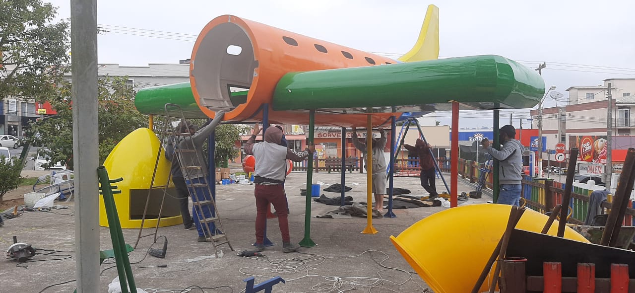 Com a instalação de brinquedos novos, as pracinhas de Mafra estão ficando cada vez mais atrativas e divertidas para que as crianças possam utilizar quando a pandemia passar. As praças Ferroviário Miguel Bielecki e Lauro Müller, no Centro de Mafra, têm uma atração a mais: o “avião parque” – um brinquedo composto por duas gangorras, dois balanços, um gira-gira, um trepa-trepa, uma escalada de madeira, quatro escadas, um balanço vai e vem, uma fuselagem e um mirante na asa esquerda.