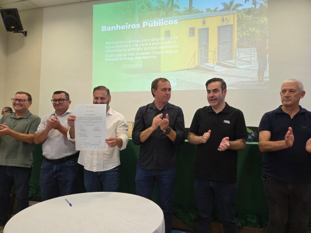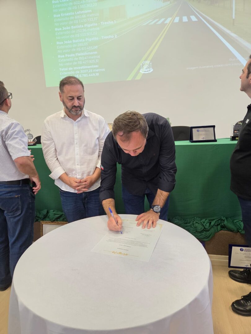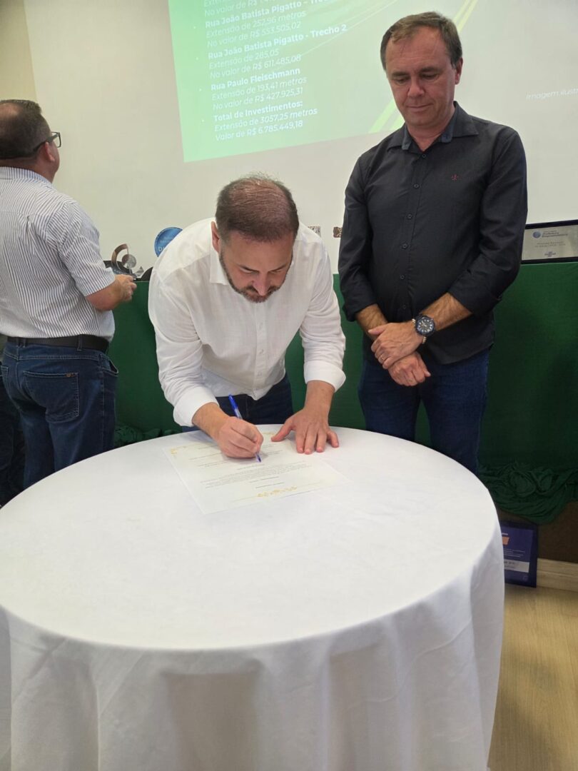O evento também foi marcado pela assinatura simbólica de diversos termos de compromisso e ordens de serviço, oficializando o início e a continuidade de projetos em diferentes áreas.