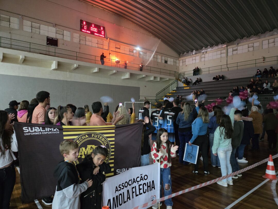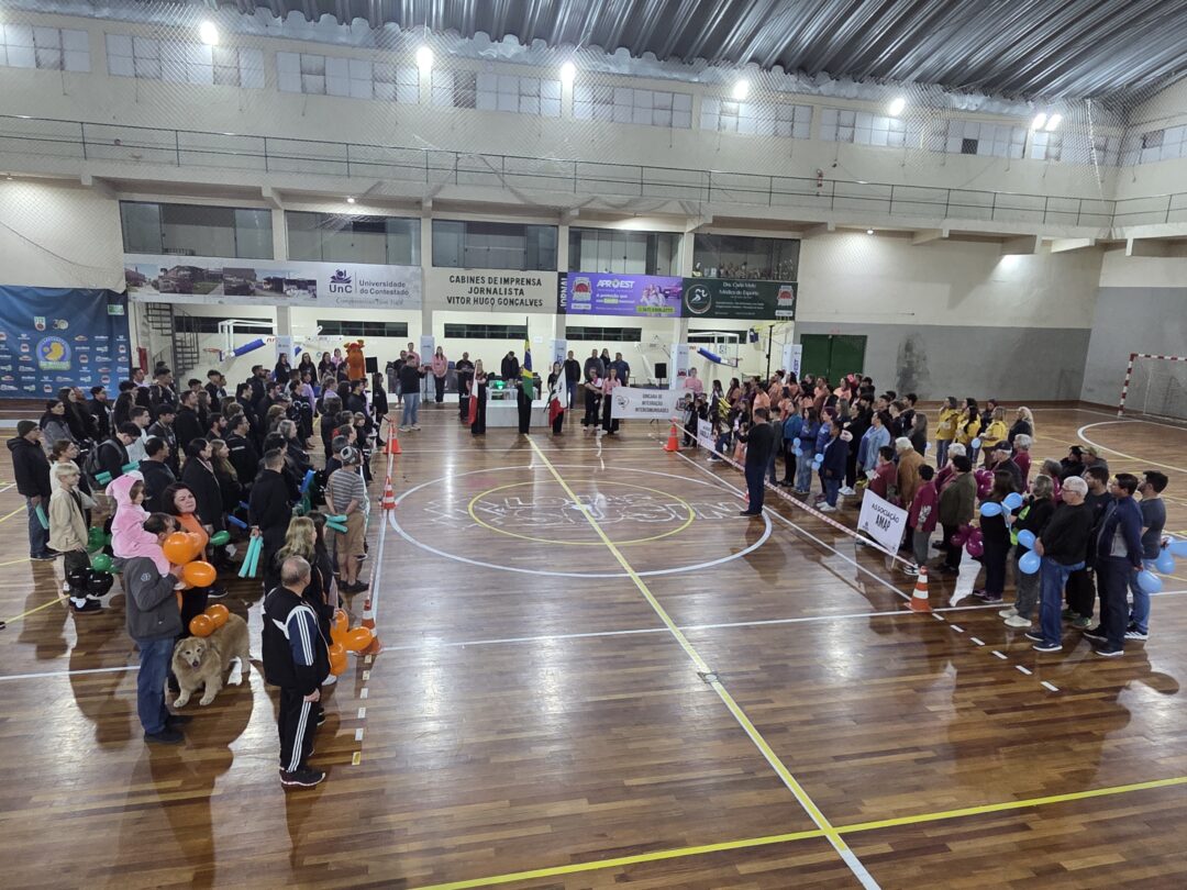 A cerimônia teve inÃcio com a animada entrada do mascote GIICO, que arrancou sorrisos e aplausos do público, abrindo espaço para a entrada das equipes participantes: Amola Flecha, Faxinal, Primavera – AMAP, Restinga, União Comunidade Vizinha – Lourenço, Vila Ivete, Vila Nova, Vilas em Movimento e Vista Alegre.