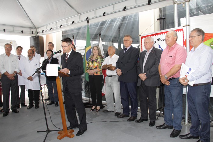 O governador Raimundo Colombo (PSD), que tinha confirmado presença acabou não podendo vir a inauguração, sendo representado no ato pelo secretário de Estado da Saúde, João Paulo Kleinübing. No momento também foi apresentado a equipe médica, enfermeiros e radiologistas responsáveis pelo setor.