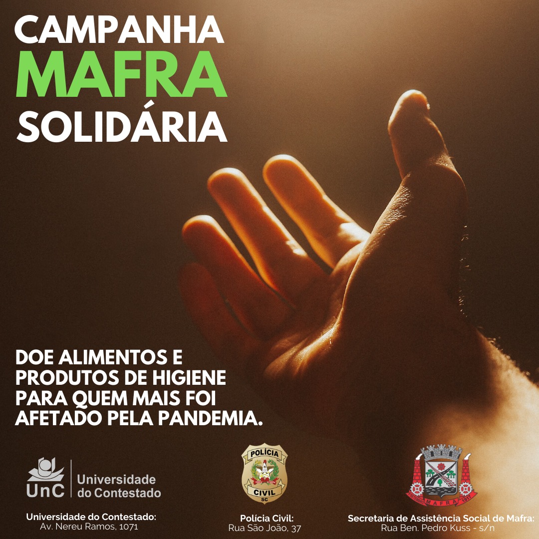Sob a organização da Secretaria Municipal de Assistência Social e Habitação, a campanha “Mafra Solidária” conta com fortes aliados como a Polícia Civil, Universidade do Contestado (UnC-Mafra) e Polícia Militar