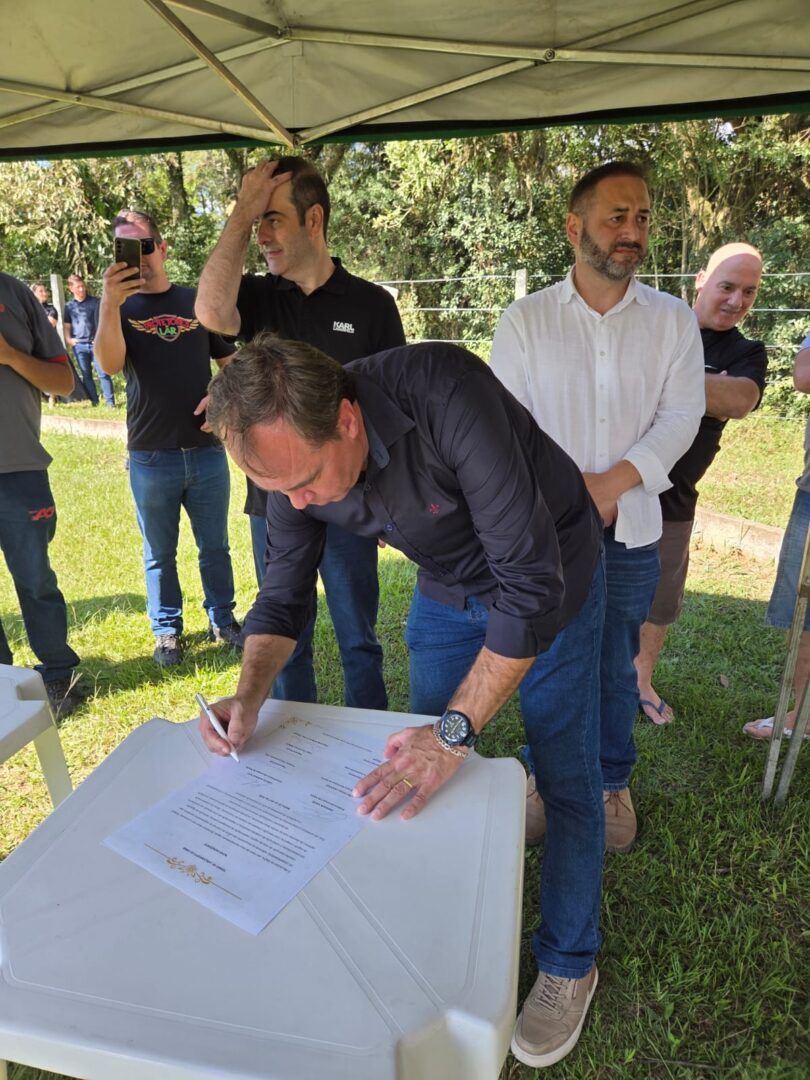 O ponto alto da cerimônia foi a assinatura simbólica do documento que oficializa o lançamento das obras, reunindo autoridades e representantes da comunidade.