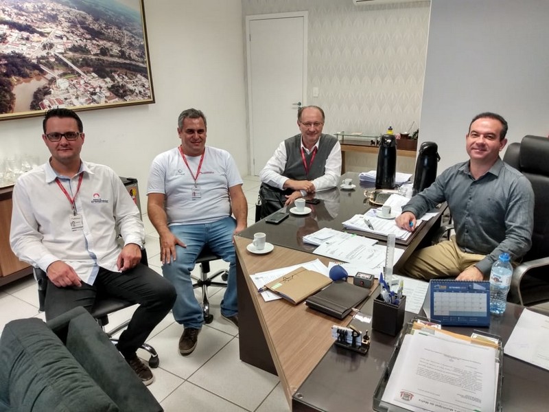 O prefeito de Mafra, Wellington Bielecki, recebeu em seu gabinete, nesta segunda feira 12, o diretor superintendente do Banco do Empreendedor, Luiz Carlos Floriani, acompanhado do gerente de operações e inovação, Wilson Dutra e do agente de crédito da unidade de Mafra, Mário Gonçalves.