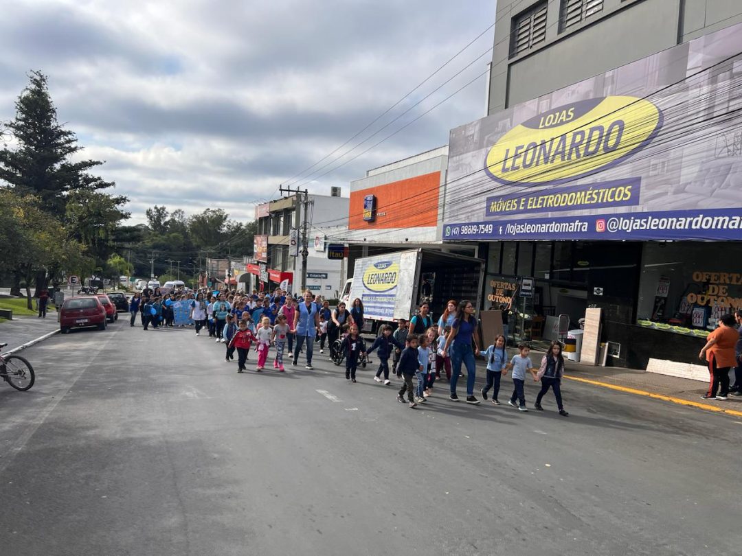 A Prefeitura de Mafra, por meio da Secretaria de Educação, Esporte e Cultura,realizou na manhã da última sexta-feira, 26, a Caminhada Azul. Neste ano, assim como no ano passado, escolas municipais e estaduais se concentraram na Praça Miguel Bielecki e em seguida iniciaram o evento, que teve como objetivo conscientizar a população sobre o autismo – uma condição que afeta milhões de pessoas em todo o mundo.
