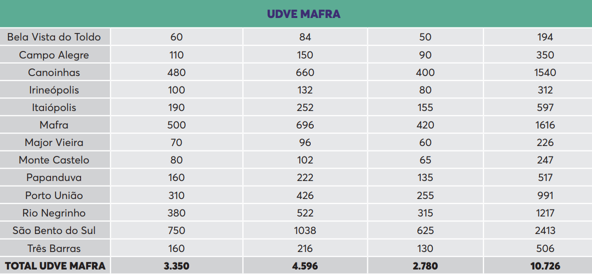 Incluindo 420 doses da Janssen. No total dos 13 municípios que fazem parte da UDVE de Mafra foram recebidas 10.726 doses dos 3 laboratórios