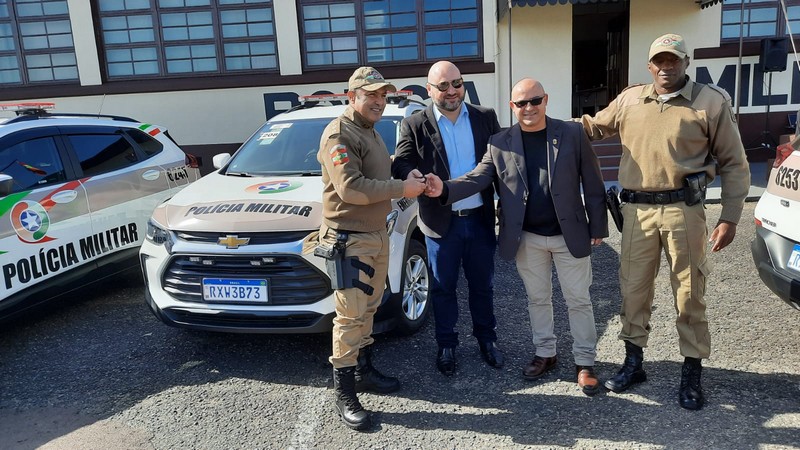 Há uma semana o prefeito de Mafra, Emerson Maas participou em Florianópolis da solenidade de entrega oficial de seis novas viaturas para a Polícia Militar. E nesta terça-feira, 28, no Quartel do 38º BPM, aconteceu a entrega das viaturas para o município. O prefeito, acompanhado do presidente da Câmara Municipal, Vanderlei Peters, recebeu das mãos do Comandante do 12º Comando Regional da Polícia Militar, Coronel Alessandro Machado, as chaves dos veículos.