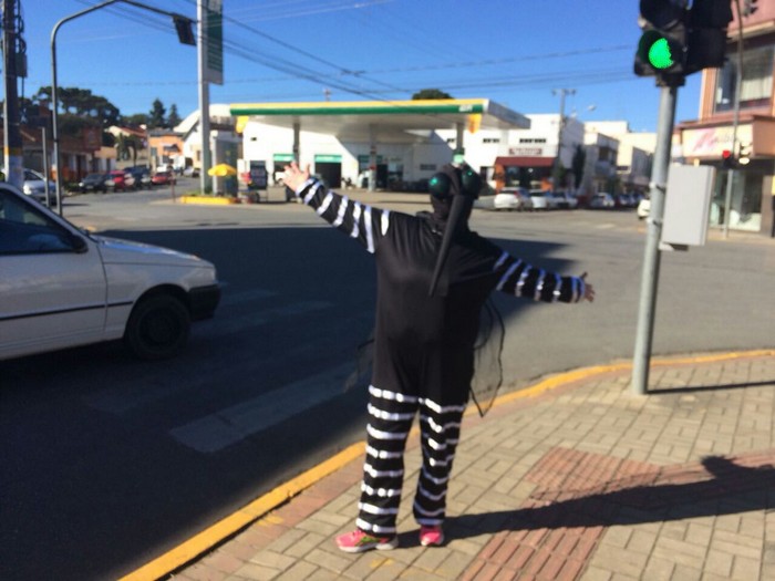 Na praça Lauro Muller houve um pedágio educativo, onde também foi desenvolvido um trabalho de orientação no comércio, além da coleta de materiais.