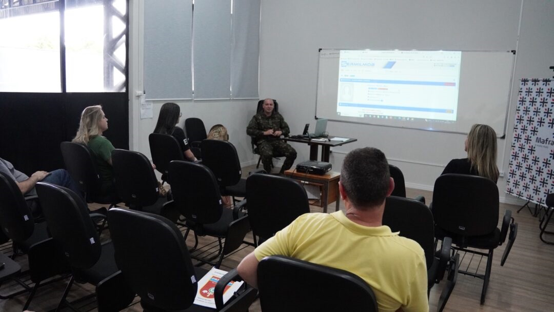 O 1° Tenente Paulo César Loeblein Boeira do PRM 05/004 de Blumenau ministrou a palestra acerca das atualidades do Sistema SERMIL, orientando os servidores das Juntas de serviços Militares das cidades de Porto União, Matos Costa, Irineópolis, Canoinhas, Três Barras, Papanduva, Itaiópolis e Rio Negrinho.
