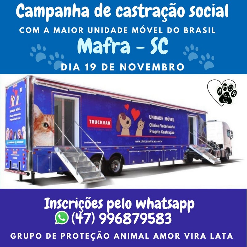 A cidade de Mafra terá novamente a campanha de castração social com a maior unidade móvel do Brasil.