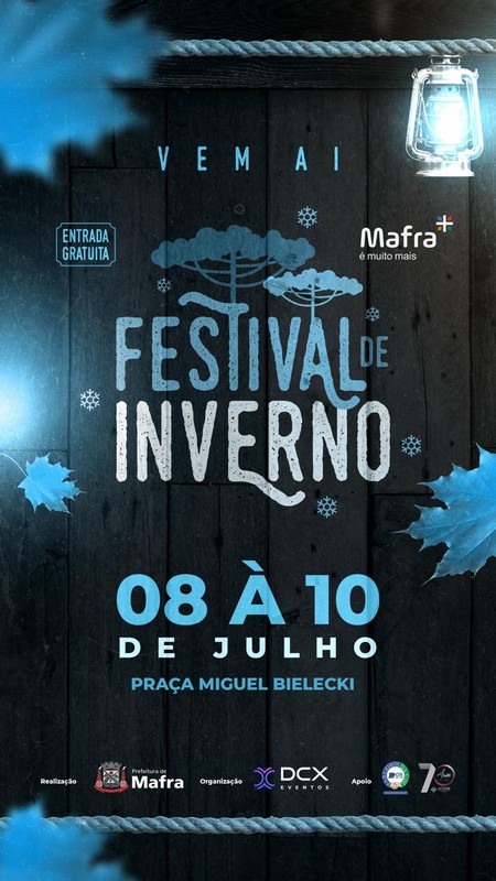 Neste final de semana, de 8 a 10 de julho, os riomafrenses e público da região terão uma ótima oportunidade de diversão, durante o Festival de Inverno de Mafra, que acontecerá na Praça Ferroviário Miguel Bieiecki.