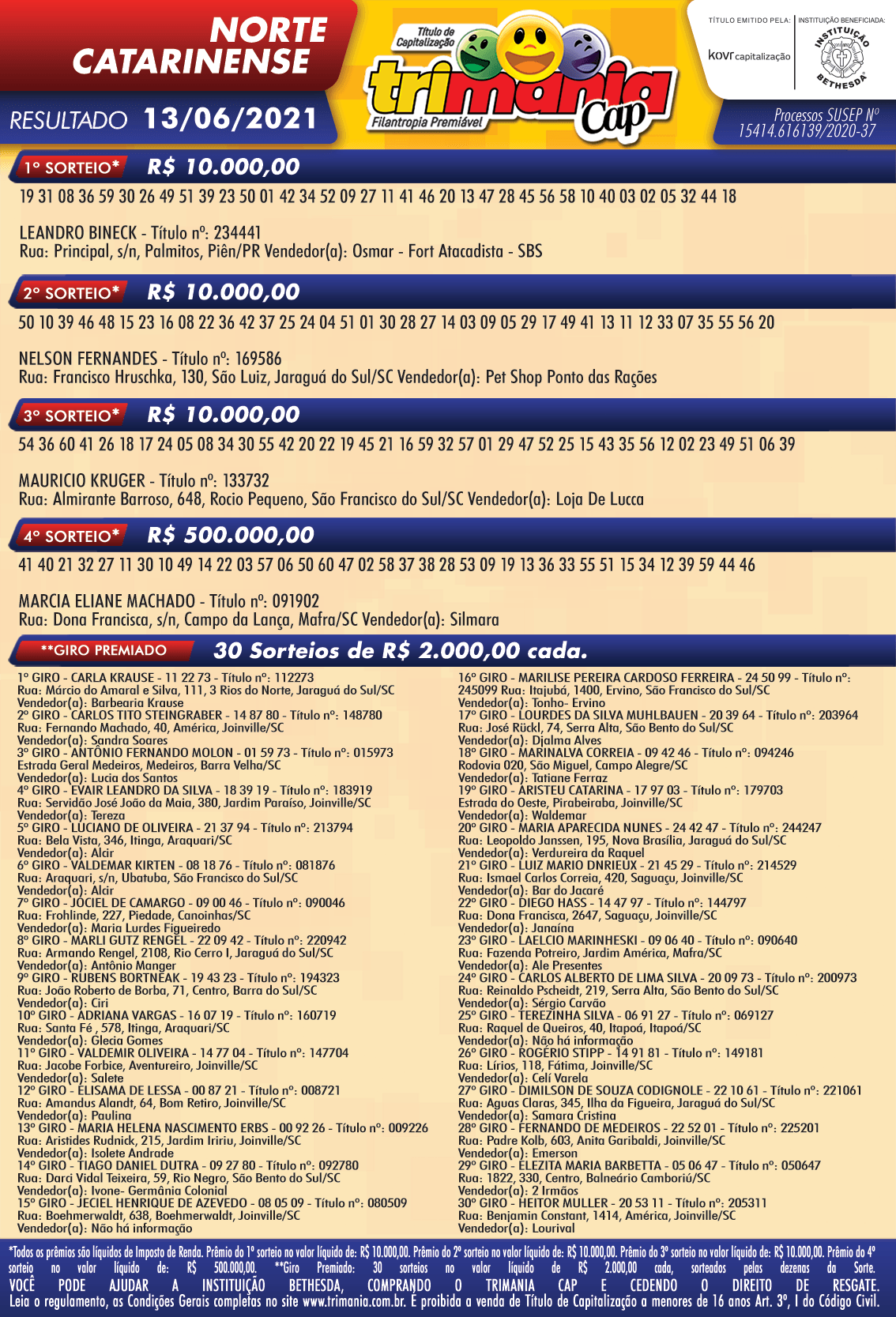 A Trimania Cap, certificado de contribuição da modalidade filantrópica, premiou mais uma mafrense neste domingo (13).