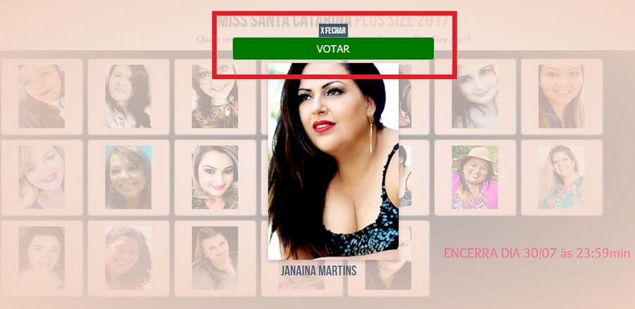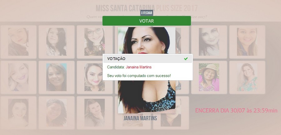 Janaina é a única representante da cidade de Mafra. “Eu gostaria muito de poder levar o nome da nossa cidade para a final desse concurso. Peço o seu voto. Pode votar quantas vezes quiser até o dia 30 de julho. Embarque nesse sonho comigo!”, comentou.
