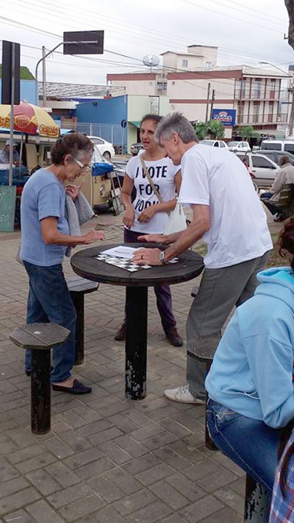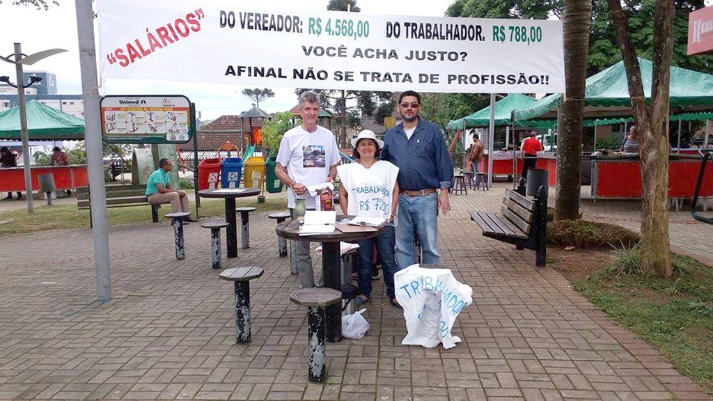 Na manhã do último sábado (21), membros do movimento que pede a redução do salário dos vereadores de Mafra estiveram na praça Lauro Müller colhendo assinaturas para o abaixo assinado. Segundo a organização, o resultado foi positivo e muitos mafrenses assinaram o documento, inclusive vereadores suplentes, os quais também ajudaram na ação. “A maioria das pessoas abordadas assinaram. Não paramos um minuto e o saldo foi positivo”, afirmou uma das voluntárias no trabalho. Os feirantes que estavam na praça também assinaram o manifesto, juntamente com empresários que por lá passaram. Até o papai e a mamãe Noel que estavam por lá, assinaram o abaixo assinado pedindo a redução do salários dos vereadores mafrenses.