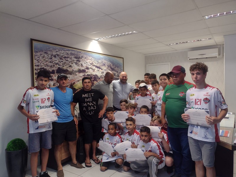 Meninos do Projeto Social de Futsal visitam Prefeito Maas
