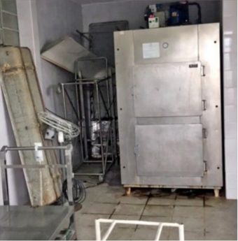 – Câmara de congelamento sem controle de temperatura, com vazamento e sem sistema de drenagem de fluídos para coleta e tratamento