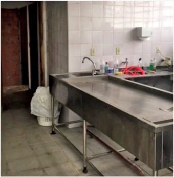 – Não possui instalações com áreas de apoio necessárias (recepção, sala para reconhecimento, sala de necropsia, escritório administrativo e técnico, banheiro com vestiário, banheiro para o público, depósito de materiais de limpeza com tanque que permita a limpeza dos ambientes)