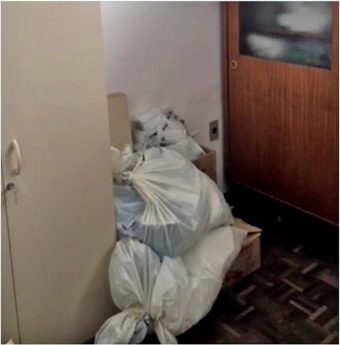 – Resíduos de serviços de saúde em lixeira comum, sem acionamento por pedal