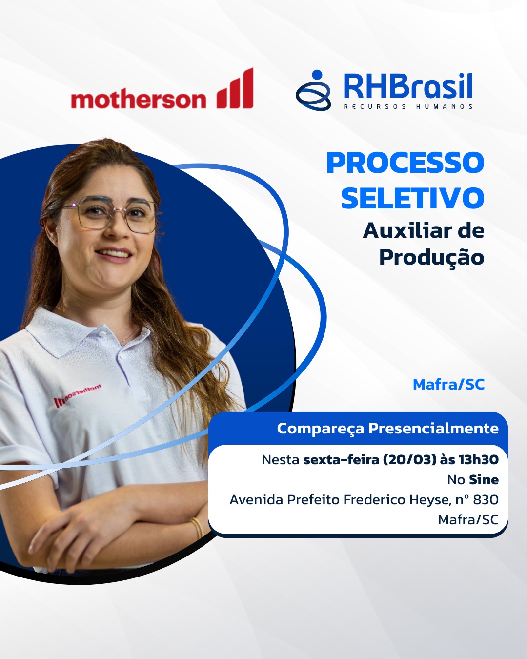 Atenção Mafra! A Motherson/PKC está com oportunidades para Auxiliar de Produção! 👷🏻