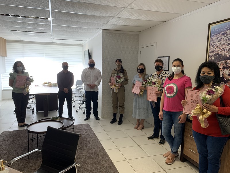 Neste dia 08 de março, Dia Internacional da Mulher, no gabinete do prefeito de Mafra, a secretária de Assistência Social e Habitação, Danielle Kondlatsch, reuniu mulheres que se destacam em suas profissões e afazeres para receberam uma homenagem da Prefeitura. Dirigindo-se às seis homenageadas, representantes da polícia civil, militar, liderança comunitária, voluntariado, agricultura e saúde, a secretária destacou que “estas mulheres desempenham papel importante e fundamental na sociedade mafrense”.