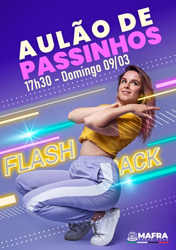 Em comemoração ao Dia da Mulher, acontece no domingo, dia 9, às 17h30, aulão de passinhos na Praça Ferroviário Miguel Bielecki (Praça dos Correios). A Associação de Dança Grupo Geração Dance convida mulheres de todas as idades, bem como as famílias para participarem do aulão de cultura flashback. O evento é gratuito, aberto ao público e conta com o apoio da Prefeitura de Mafra.