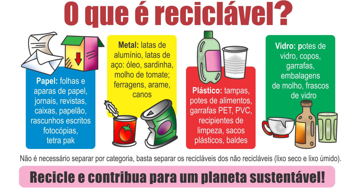 – Papel: jornais, revistas, folhetos, caixas de papelão, embalagens de papel, caixas de leite.