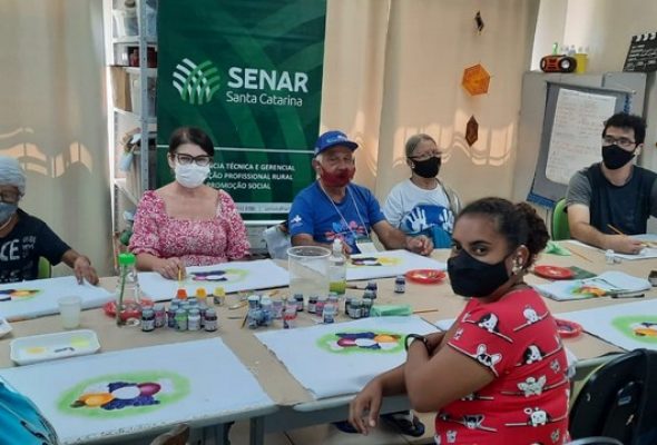 Usuários do CAPS I de Mafra participam de oficina de pintura em pano de prato