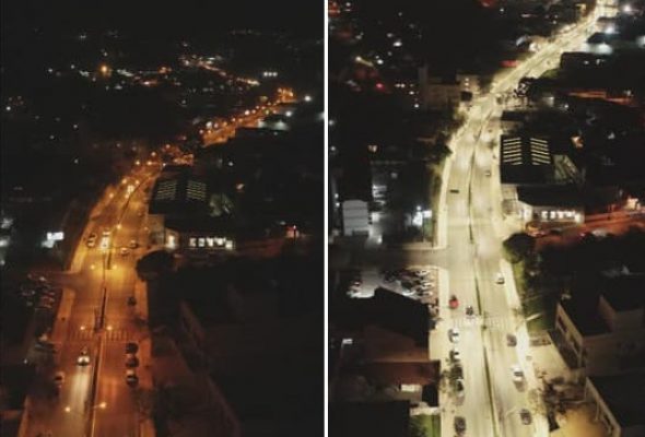 Fotos mostram o antes e depois da iluminação LED na Avenida Nereu Ramos