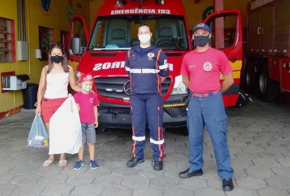 Garoto de 6 anos comemora aniversário com bombeiros que salvaram sua vida em Mafra