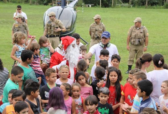 Papai Noel de helicóptero visita a Vila Solidariedade