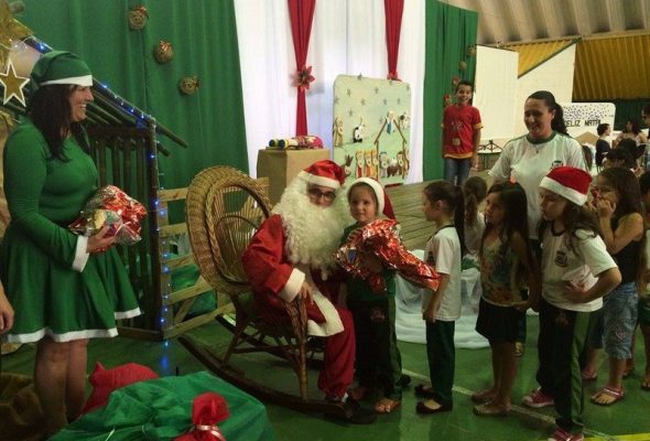 Alunos do CEM Beija-Flor recebem Papai Noel na escola e ganham presentes