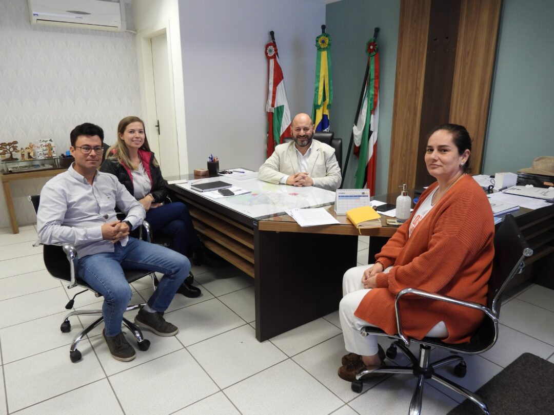 E para tratar do início da ação, de tornar o sonho uma realidade, Emerson Maas recebeu em reunião no gabinete, na manhã de segunda-feira, dia 7, os técnicos da empresa, Daiane Hornburg, assistente de engenharia e Marciano Kuviatkoski, diretor de operações. A subdiretora de Desenvolvimento Urbano do Município, Elisangela de Lima, também estava presente na reunião.