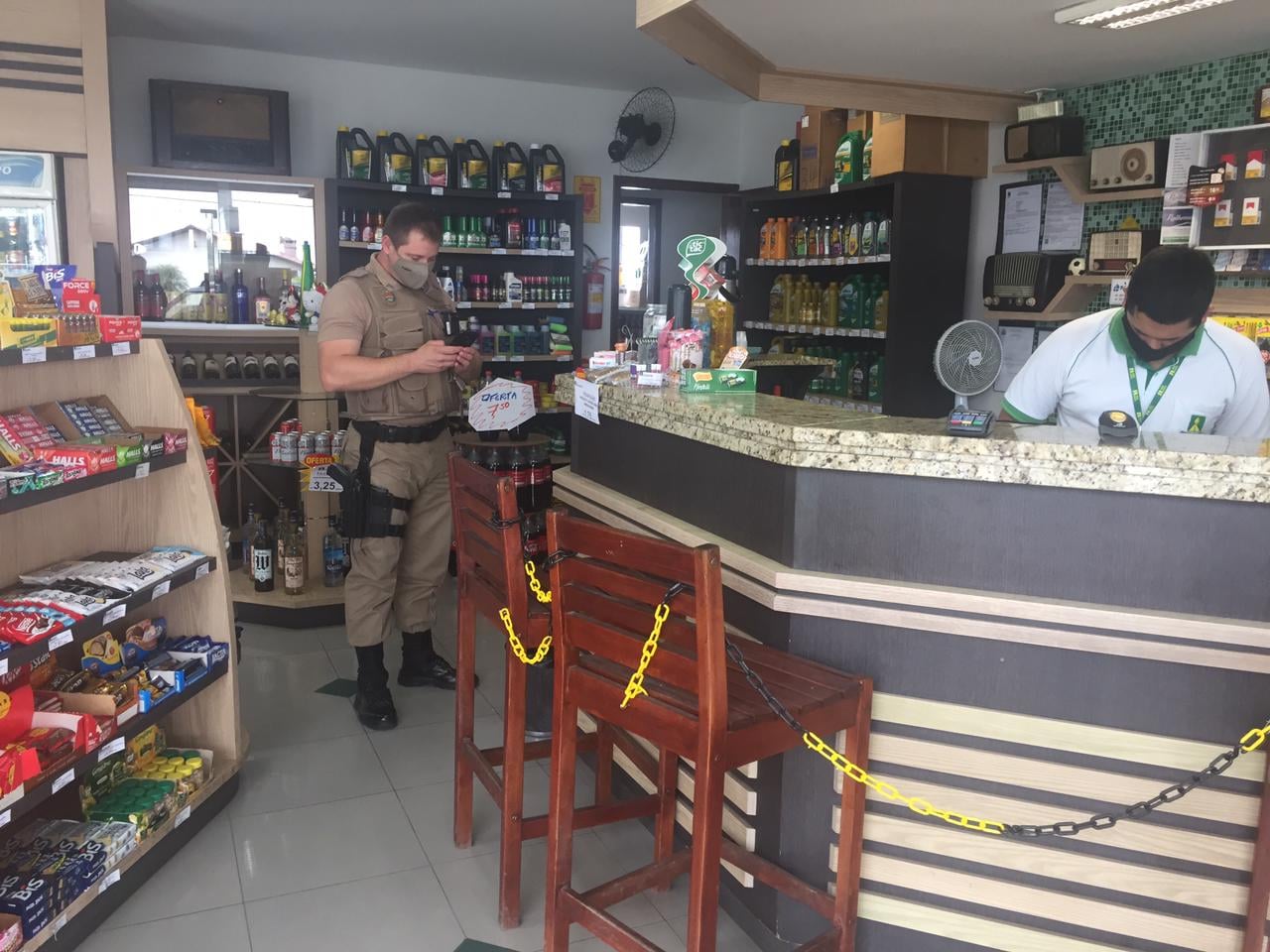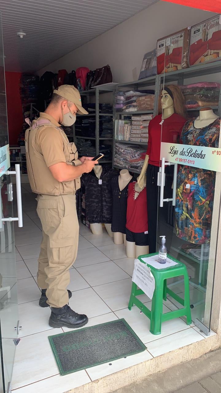No último final de semana, dias 18 a 21, a Guarnição Especial de Mafra (Gemfa), realizou um total de 107 fiscalizações em estabelecimentos comerciais, para verificação e conscientização referentes as normas das autoridades sanitárias durante a pandemia da Covid-19.
