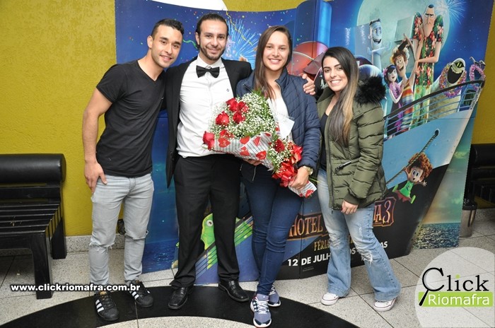Após assistir e se emocionar com o pedido de casamento no vídeo, Andrieli foi surpreendida ainda mais quando Jefferson entrou na sala do cinema com um buquê de flor e com as alianças, para então fazer o pedido pessoalmente. O público presente aplaudiu a bela cena de amor quando Andrieli disse sim ao seu namorado e agora noivo. Após assistirem ao filme, os noivos pousaram para fotos no hall de entrada do cinema juntamente com os familiares e amigos, deixando o momento ainda mais memorável.