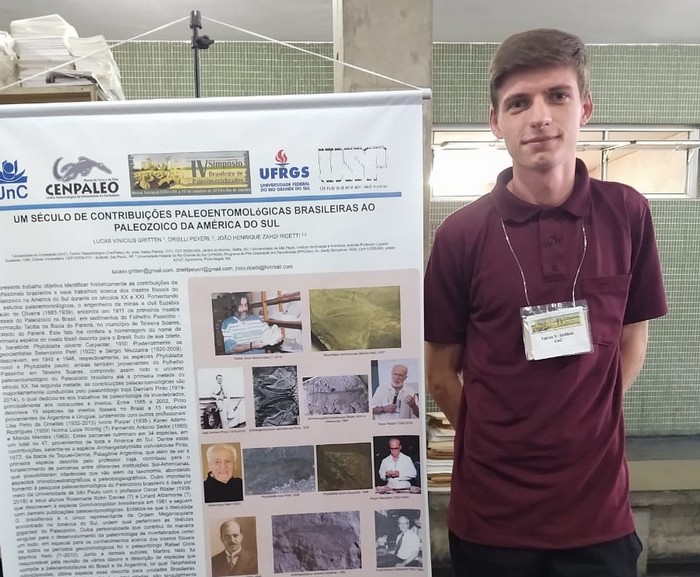 Ambos apresentaram trabalhos desenvolvidos dentro do Cenpleo em parceria com demais profissionais de outras instituições, como a professora. Drielli Peyerl, da USP, coautora dos trabalhos e orientadora do graduando Lucas, e do professor. Roberto Iannuzzi, da UFRGS, onde João realiza seu doutorado sob co-orientação do mesmo professor. Ainda, as pesquisas, contaram com a participação e incentivo do Coordenador do Cenpaleo, Luiz Carlos Weinschütz, e da professora. Ana Karina Scomazzon, também da UFRGS.