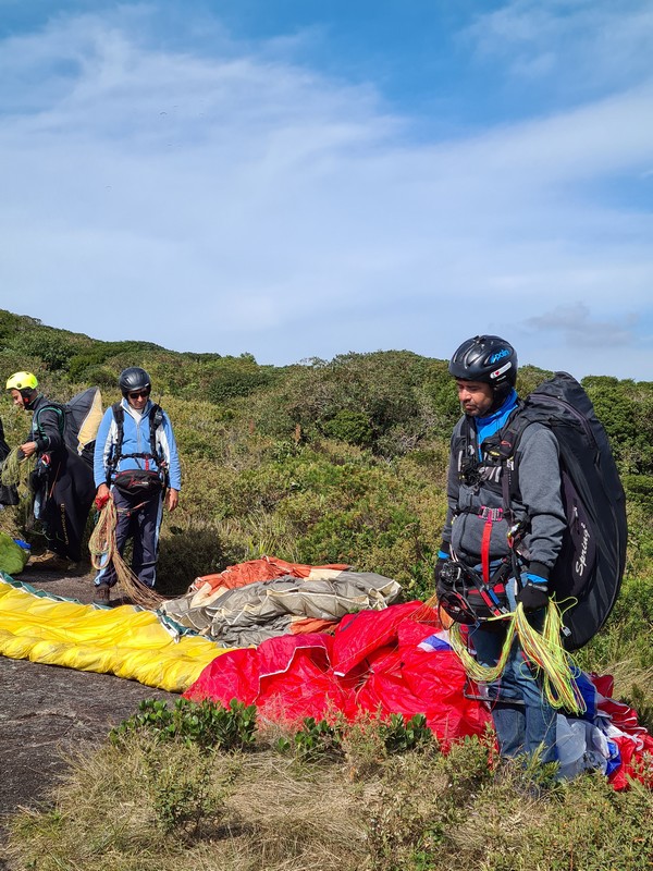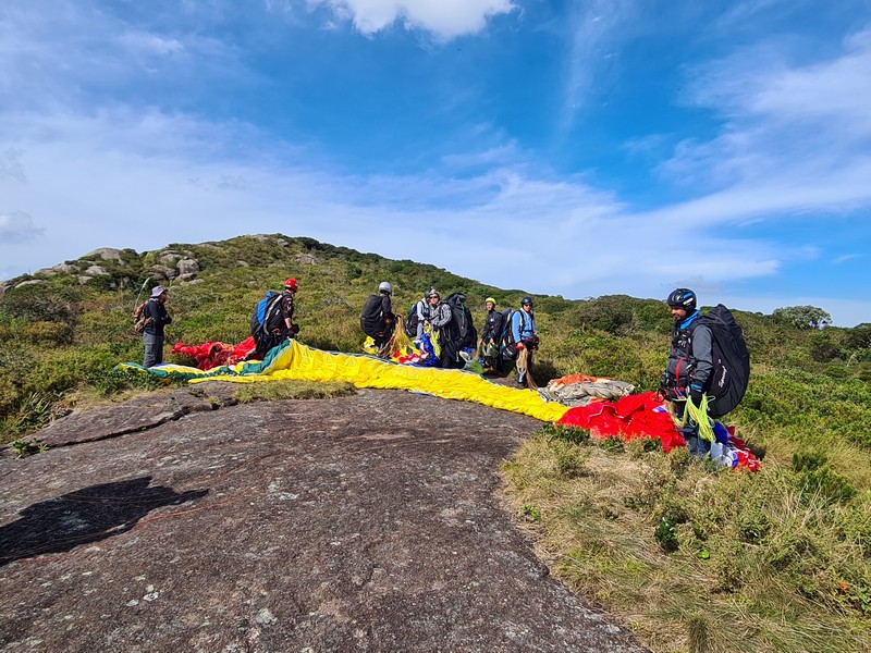 Os riomafrenses Roberto Bertolinno, Fausto Kriger e Adilson Pires, entre vários pilotos de parapente, participaram no início deste mês do evento no Morro do Anhangava, localizado na Serra da Baitaca, no município de Quatro Barras-PR.