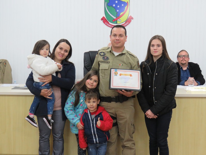 Na última terça, 09, os vereadores homenagearam com uma moção de aplausos o cabo da Polícia Militar Jackson Woginiack pelo ato de bravura na Guarnição Especial de Mafra.