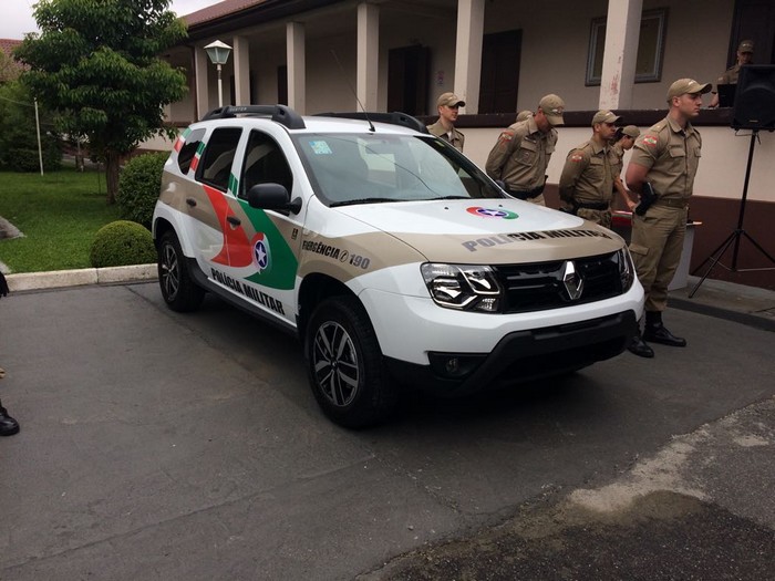 Na manhã da última sexta-feira (08), o município de Mafra entregou à Guarnição Especial de Mafra (GEMfa), um veículo zero Km para ser utilizado no patrulhamento rural. O novo veículo SUV, 04 portas, 2.0 (Renault Duster Dynamique) foi adquirido no valor de R$ 111.500,00, por meio de processo licitatório – pregão presencial/registro de preço nº 075/2017. O comandante da Guarnição Especial de Mafra, major Marcelo Pereira recebeu das mãos do secretário municipal de Administração, Rodney Medeiros, na ocasião, representando o prefeito Wellington Bielecki, as chaves da nova viatura. De acordo com o comandante, o veículo terá a finalidade de atuar no desempenho das atividades relativas à segurança rural do município. Acompanharam a entrega os demais policiais militares, autoridades e convidados.