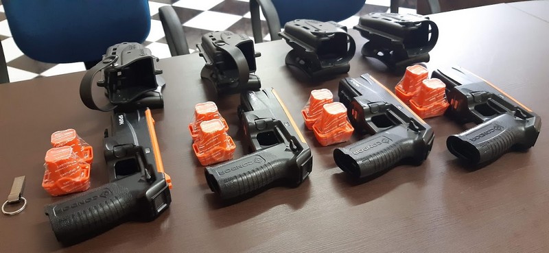 Este tipo de armamento é usado por diversas forças de segurança no país e de outros países. Ela emite pulsos elétricos a distância, a partir de dois dardos disparados conectados ao suspeito por meio de fios, atuando no sistema neuromuscular causando fortes contrações musculares, incapacitando a pessoa atingida, dando a oportunidade para a sua imobilização. A Spark Z 2.0 disponibiliza, também, um sistema de neutralização que pode ser usado pelo policial como item de segurança.