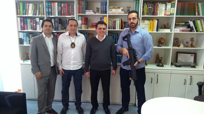 O juiz da Comarca de Mafra, Dr. André Luiz Lopes de Souza e o promotor da 2ª Promotoria de Justiça, Dr. Rodrigo Cesar Barbosa, promoveram, na tarde do último dia 05, a entrega de um Fuzil Imbel, calibre .556, à Divisão de Investigação Criminal – DIC da Polícia Civil.