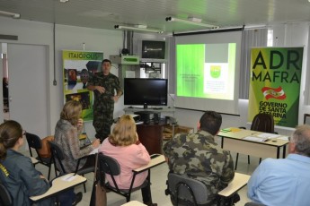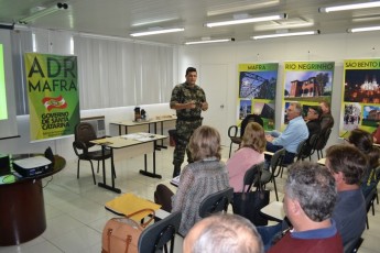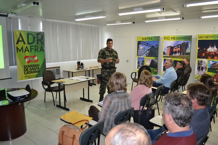 Na Semana do Meio Ambiente, a reunião mensal do Colegiado Regional de Governo da Agência de Desenvolvimento Regional (ADR) de Mafra teve como palestrantes o Major Froehner e o Cabo Moreschi, da 3ª Companhia de Polícia Militar Ambiental. Dos sete municípios da ADR, cinco fazem parte da área de circunscrição da companhia: Monte Castelo, Papanduva, Itaiópolis, Mafra e Rio Negrinho.