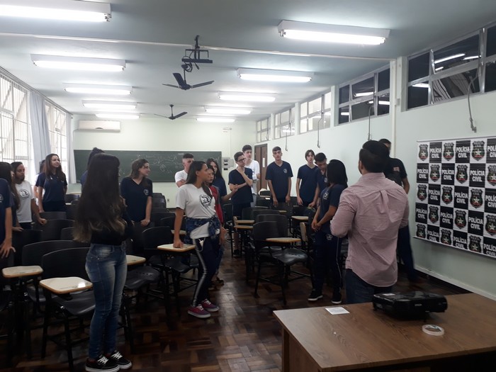 Assim, nesta quinta (08), policiais civis da Delegacia de Proteção à Criança, Adolescente, Mulher e Idoso de Mafra, realizaram atividades com grupos de alunos das escolas estaduais Barão de Antonina e Santo Antônio, onde houve debates e posicionamentos de temas relacionados à violência contra mulher, especialmente sobre situações típicas de um relacionamento abusivo.