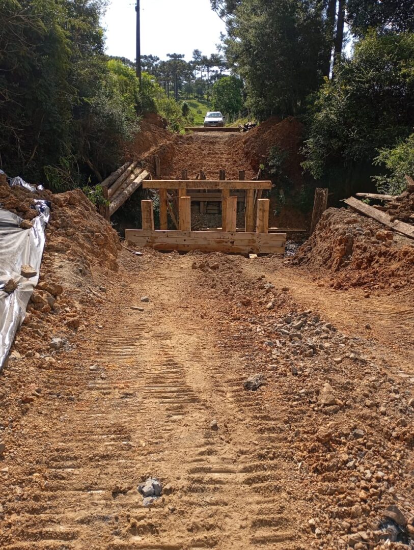 Equipe da Secretaria de Obras e Serviços Públicos da Prefeitura de Mafra mantém serviços constantes no interior do Município. São obras de alargamento, patrolamento e empedramento de estradas e também de recuperação de pontes.