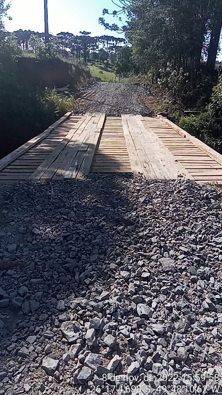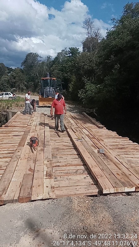 A Secretaria Municipal de Obras destaca que  está atuando constantemente na recuperação das pontes de madeiras, como forma de  assegurar  que os produtores rurais possam trafegar e escoar suas produções com segurança, bem como  garantir a passagem dos ônibus escolares.