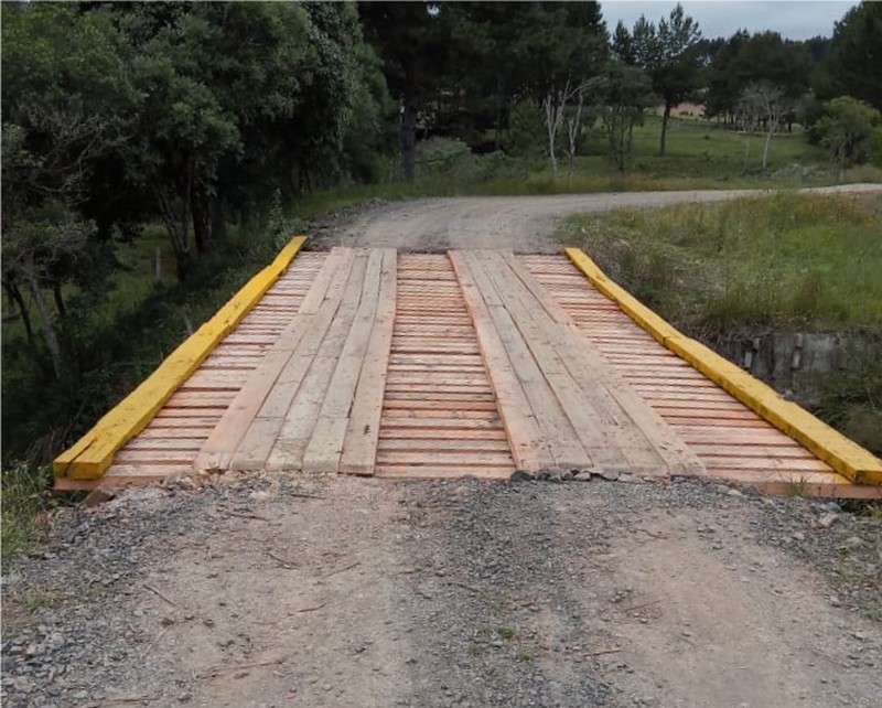 Ela foi totalmente recuperada, e o tráfego para escoamento de safra, transporte escolar e de veÃculos de passeio podem seguir normalmente. A ponte tem 4,5 metros de largura e 12 metros de comprimento.