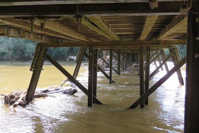 Segundo a declaração de uma moradora da localidade, afirma que a ponte foi construída pela comunidade usando trilhos de trem, mas por ela ser próxima ao leito do rio é atingida facilmente pelas águas.
