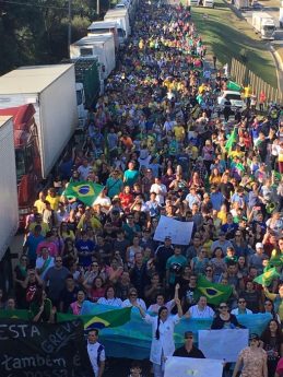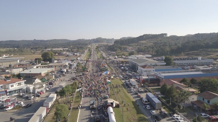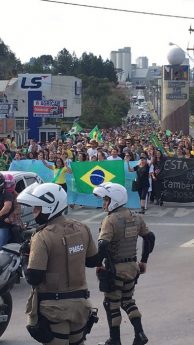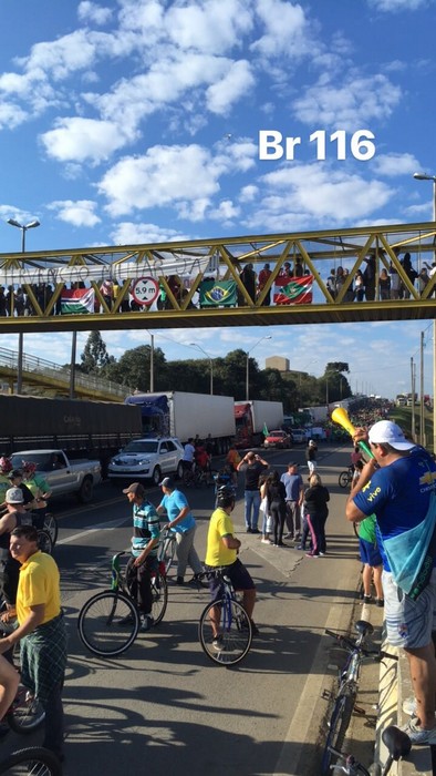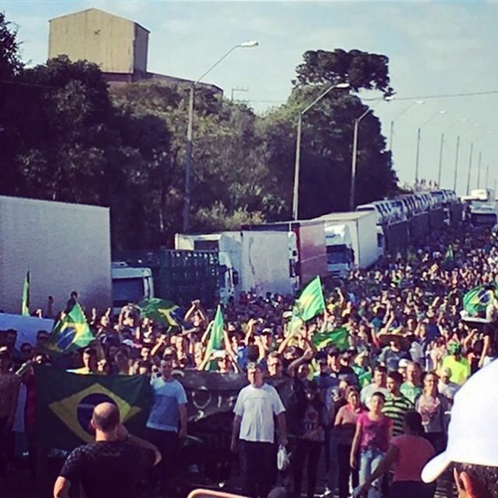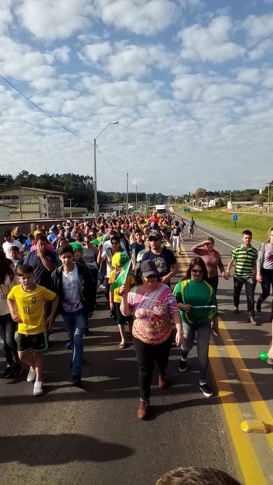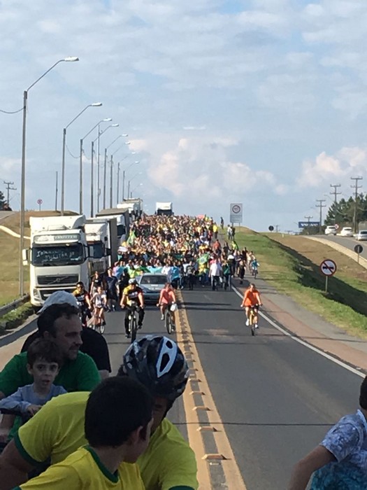 Também na tarde de ontem um grupo de pessoas realizou uma passeada, saindo do trevo da Souza Cruz indo até o quartel do Exército em Rio Negro (5º RCC), tentando sensibilizar os militares em favor da classe dos caminhoneiros.
